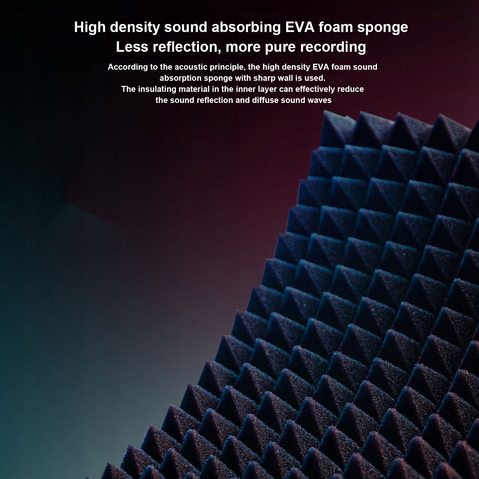1. Портативна студія мобільного запису: звук, що поглинає вал протиїдзни та зменшує шум. Оптимізувати середовище запису та зменшити шум. Звук пінопласту EVA -абсорбуюча губка: Згідно з акустичним принципом, використовується губка, що поглинає звук піни Eva високої щільності та гострі стінки. Ізоляційний матеріал у внутрішньому шарі може ефективно зменшити відображення звукових і відволікати звукові хвилі. Багатошарове зменшення шуму та більш чіткий звук: система поглинання, захисту та запобігання шуму за допомогою багатошарової структури. Зменшіть шум навколишнього середовища ззаду та збоку. Ефективно запобігає відображенням звуку на мікрофоні. Ефективно зменшити надмірну атмосферу в приміщенні та звукові ефекти поза осі. Зовнішнє покриття: Зовнішнє покриття може ефективно зменшити відбиття від стіни та голосу та протидіяти шуму, що генерується за допомогою реверберації зовнішнього середовища, щоб отримати чистий ефект запису. Портативний і складний: Звук для звуку мікрофона, що поглинає обкладинка, складається з трьох панелей, які можна відрегулювати під кутом, а також можна легко скласти, переміщувати та використовувати. Простір середовища запису можна регулювати візуально. Сфера застосування: Ізоляційна обкладинка підходить для запису комп'ютера, запису обкладинки, караоке в мережі та розважальних розмовах.
