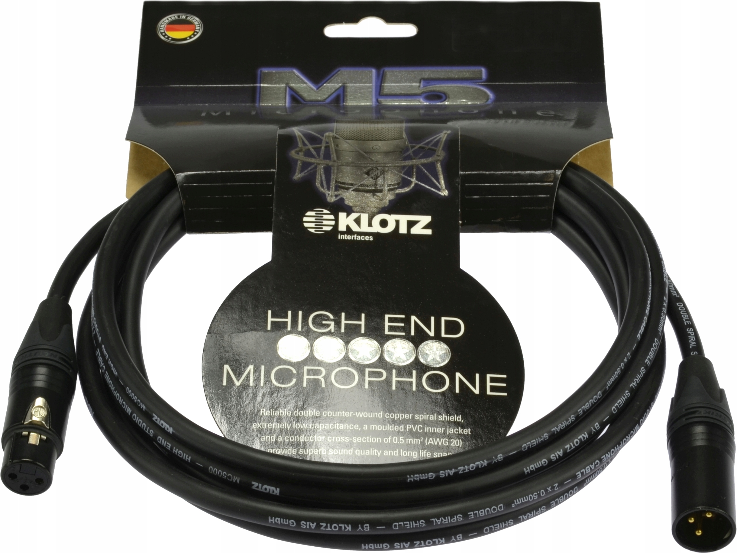 Професійний мікрофонний кабель KLOTZ M5 не тільки забезпечує передачу сигналу практично без втрат на великі відстані, але також гарантує неперевершений захист від перешкод завдяки вдосконаленому екрануванню – особливо важливому аспекту в студійній роботі.