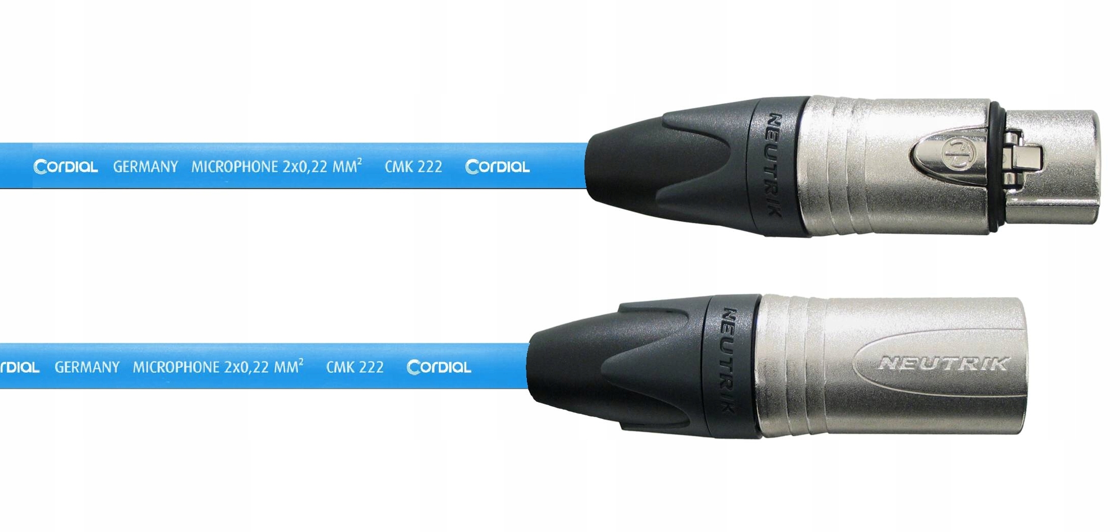 Професійний мікрофонний кабель Cordial XLR - XLR має високоякісні роз’єми Neutrik (Yongsheng), припаяні вручну, зі спеціально розробленою гільзою проти перегинів, що відрізняє його від дешевих кабелів масового виробництва та робить він стійкий до пошкоджень у точці з’єднання