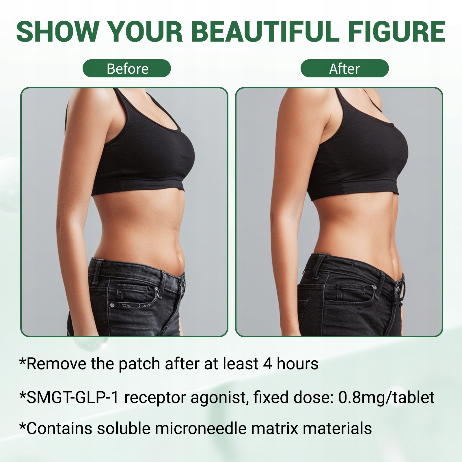 Нанопластир з мікроголками з активною формулою, що сприяє спалюванню жиру