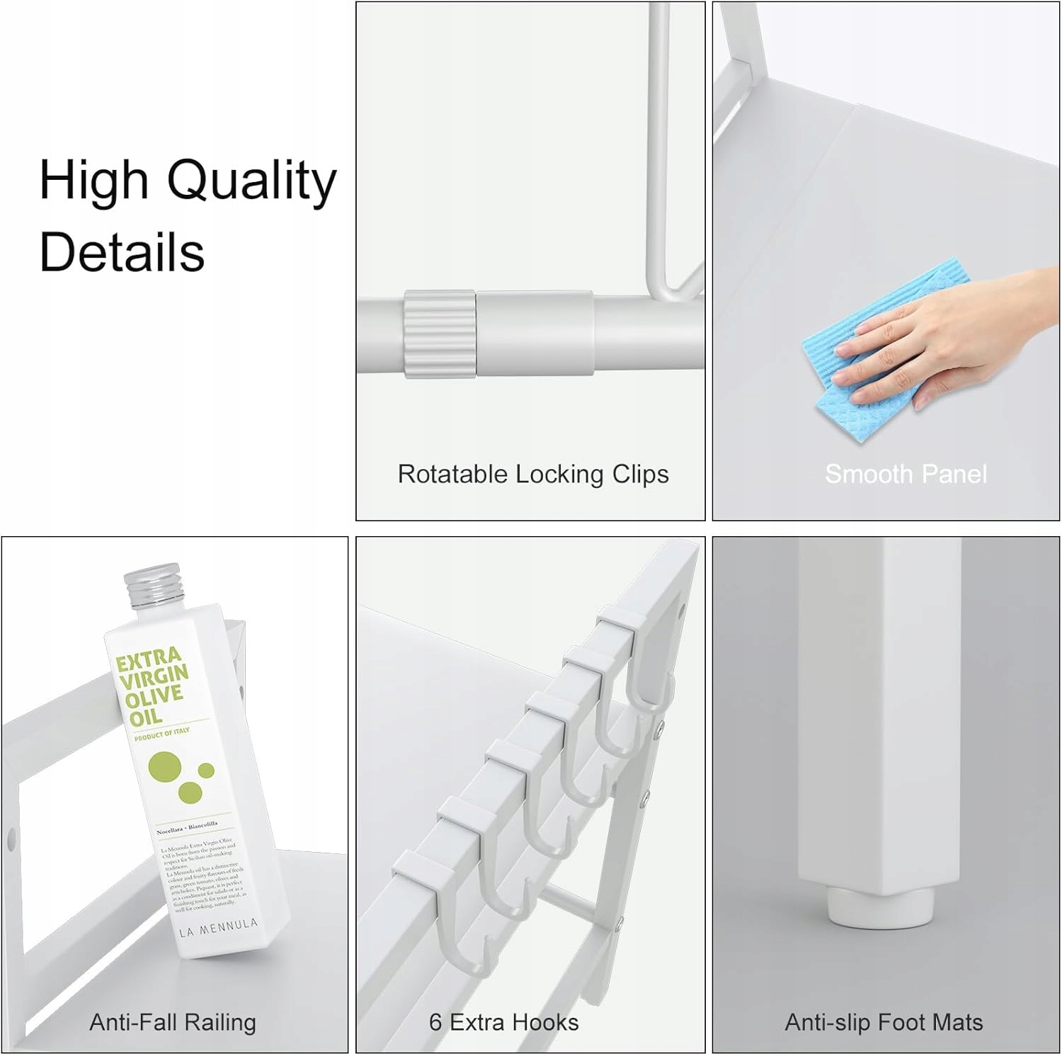 велика частина цієї кухонної полиці поділена на дві частини, до неї входять професійні інструменти та зрозумілі та прості інструкції зі складання (може бути недоступними польською), не вимагає свердління та може бути встановлена всього за десять хвилин.