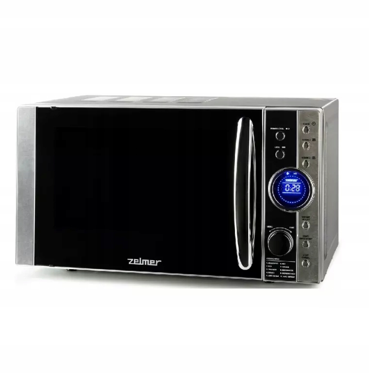 Мікрохвильова піч — чудовий спосіб розморожувати продукти. Розморожуйте заморожені продукти. продукти ніжно та швидко.. Це може бути корисним у разі несподіваних гостей. Також мікрохвильова піч Zelmer оснащена сучасним грилем. Нагрівальний елемент гриля розташований під верхньою стінкою всередині варильної камери. Він працює, коли дверцята закриті, а скляна вертушка обертається. Обертання плити забезпечує краще та рівномірне пропікання їжі. Попереднє розігрівання гриля прискорює приготування.
