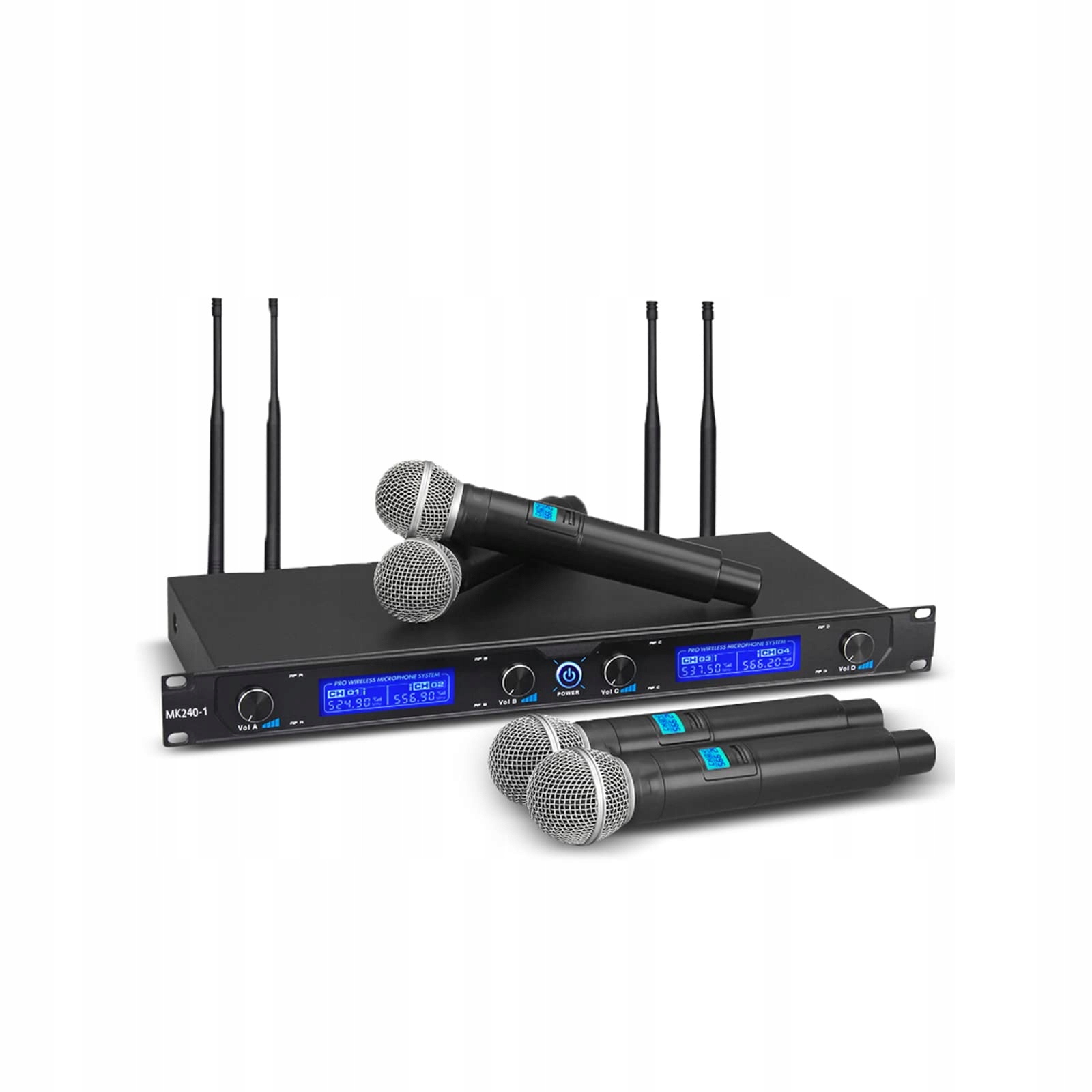 - Система мікрофонного мікрофона: суцільний набір з металу з 4 бездротовими мікрофонами UHF та 4-канальним бездротовим приймачем для великого об'єму. Це дозволяє одночасно використовувати до 40 систем із загальною кількістю 4 х 40 каналів для невеликих подій на свіжому повітрі, конференц -залах, заняттях, барів, танцювальних кімнат, кімнат KTV та складних професійних концертних середовищ для досягнення задовільних результатів.