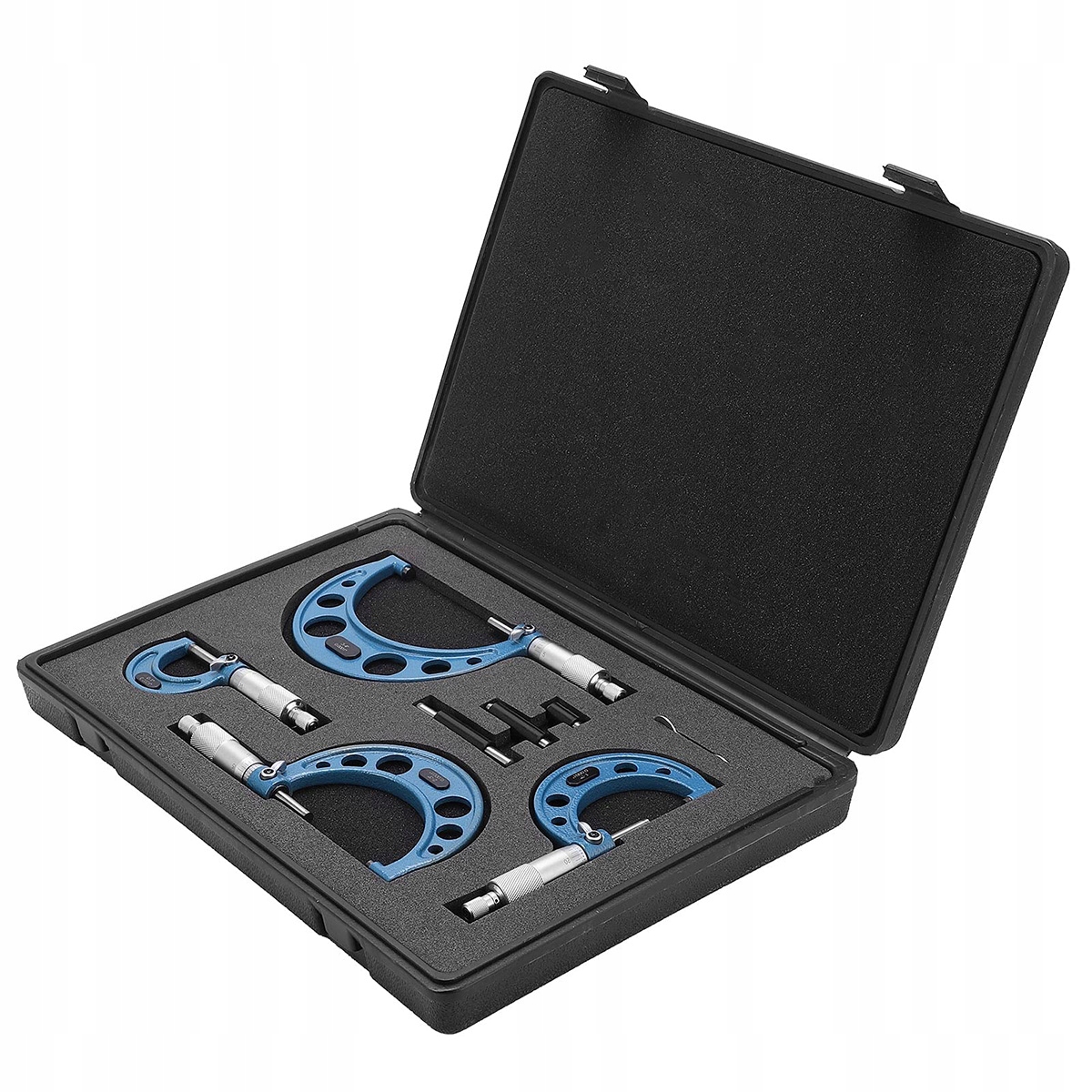 4 мікрометри з діапазонами вимірювання: 0-25 мм, 25-50 мм, 50-75 мм, 75-100 мм, чітка шкала з точністю 0,01 мм.