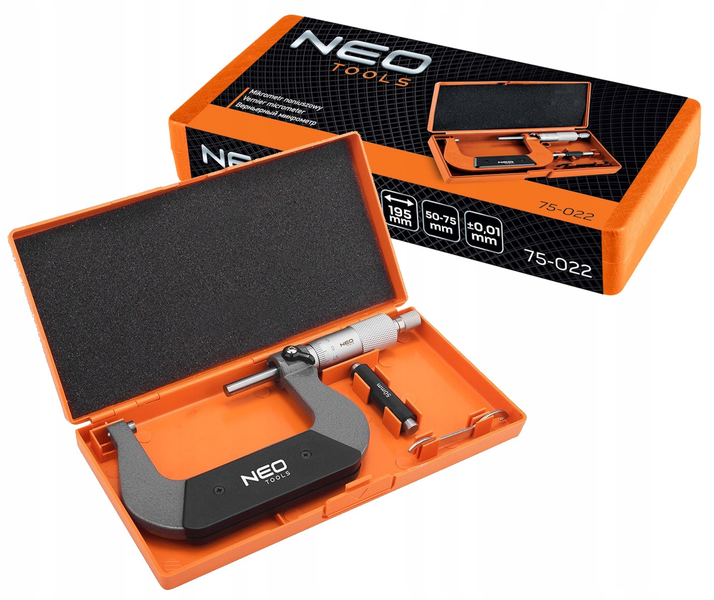 Нініусний мікрометр 50-75 мм 75-022 від NEO забезпечує точність вимірювання ±0,01 мм. Це спеціалізований вимірювальний прилад для вимірювання геометричних розмірів предметів. Характеризується довжиною 190 мм, шириною 100 мм і висотою 25 мм. Його вага становить 470 г. Мікрометр характеризується високою якістю виготовлення - чітка шкала/ноніус, плавна робота барабана та точне вимірювання. Засіб простий у використанні. У комплект входить ключ обнулення, стандартна і практична пластикові коробки. Торгова марка NEO рекомендована професіоналам і любителям DIY.