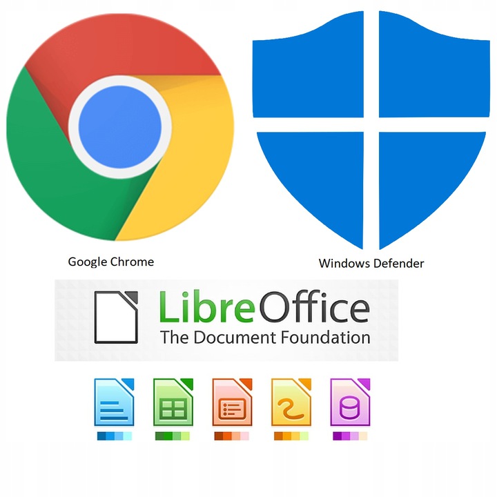 Усі наші комп'ютери готові до роботи. Комп’ютер має повний і легальний офісний пакет LibreOffice, антивірусну програму Windows Defender і браузер Google Chrome, тож одразу після підключення комп’ютера ми зможемо використовувати його.