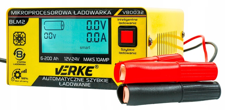 Випрямляч VERKE виготовлено з високоякісних матеріалів, що робить його міцним і довговічним. Застосовані струмовий і тепловий захист підвищують безпеку використання зарядного пристрою, а функція регенерації батареї дозволяє продовжити термін її служби.