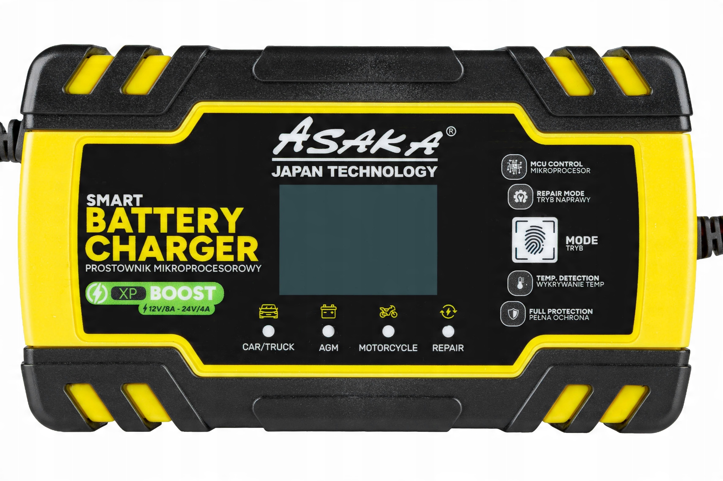 - автомобілі (автомобільні батареї) - призначені для традиційних свинцевих акумуляторів, EFB, кальцію, глибокого циклу та інших, що використовуються в автомобілях пасажирів та фургонах. 4 Ці типи акумуляторів характеризуються високою стійкістю до глибокого розряду, вони не є технічним обслуговуванням і ідеально підходять для транспортних засобів із системою старту/зупинки. Випрямляч Asaka забезпечує в цьому режимі належним чином адаптовану напругу та інтенсивність. 4