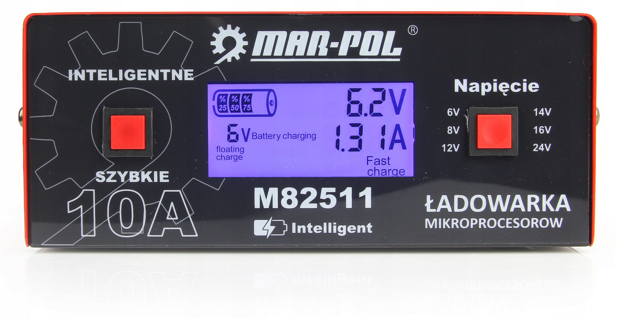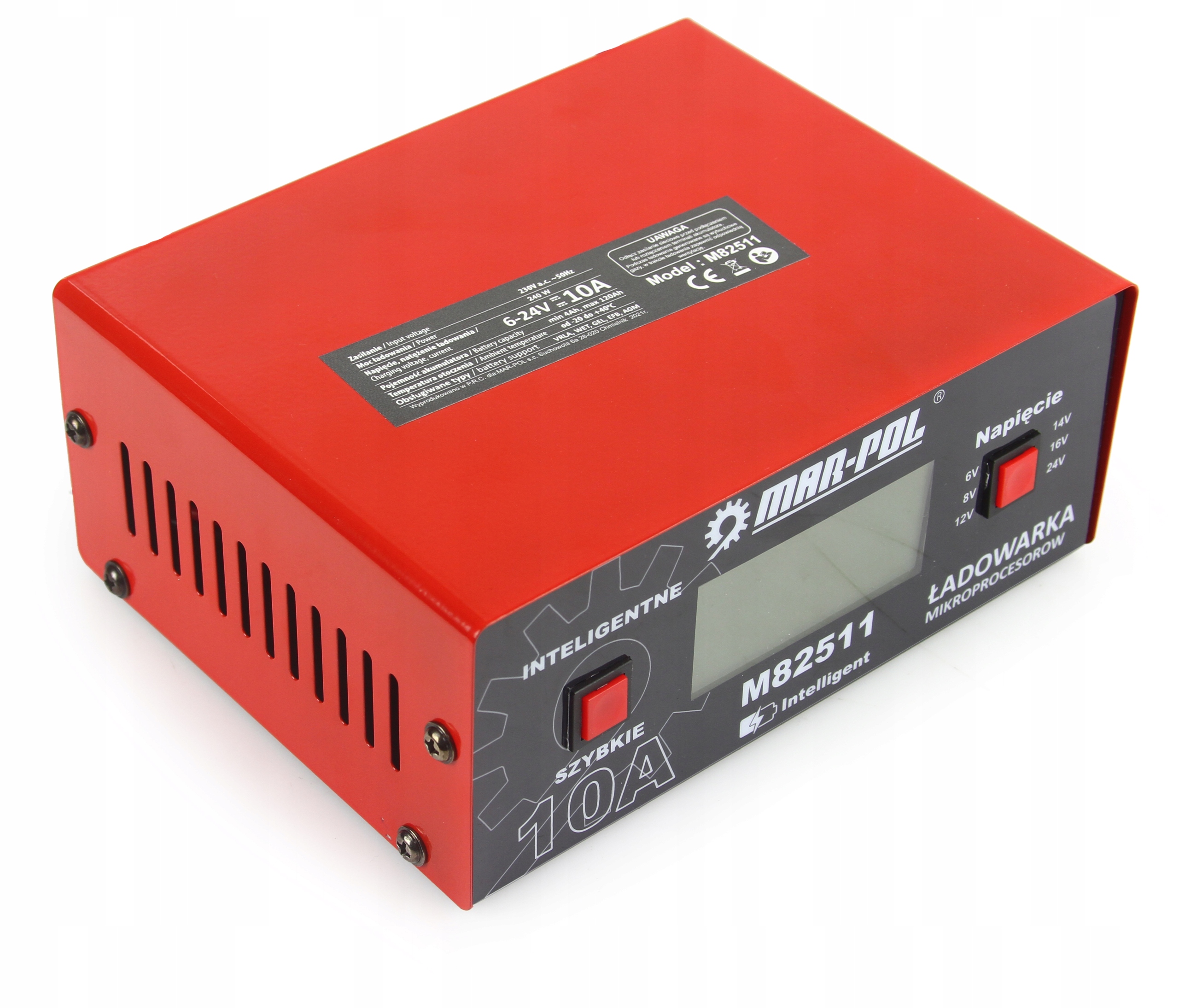 Мікропроцесорний випрямляч від MAR-POL - це випрямляч із мікропроцесорною системою управління та управління, що використовує технологію ШІМ (широтно-імпульсна модуляція) з можливістю заряджання акумуляторів 6В, 8В, 12В, 14В, 16В і 24В