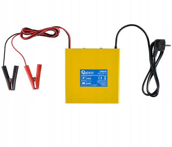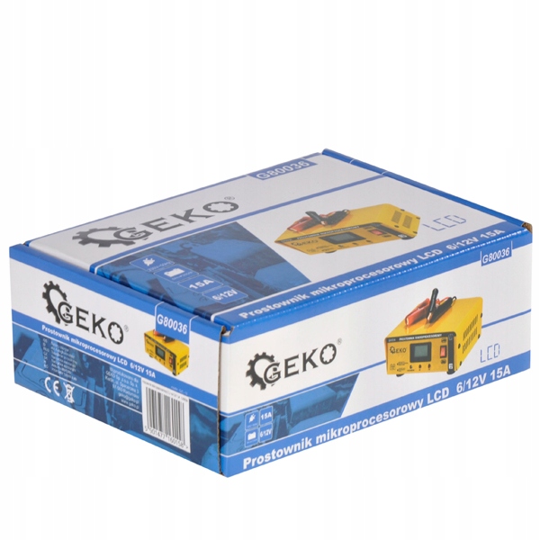 Мікропроцесорний випрямляч GEKO для зарядки акумуляторів 6 В і 12 В з функцією автоматичної зарядки.