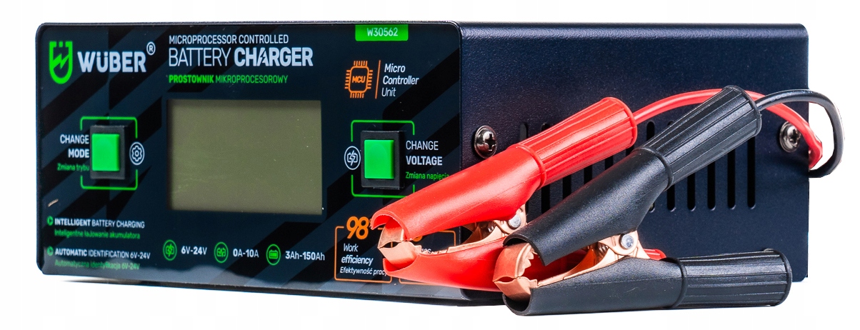 Сила струму (макс. 10 А) і ККД 98% забезпечать дуже швидку і повну зарядку акумулятора з діагностикою та ремонтом