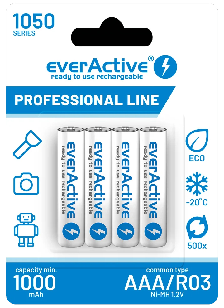 4x everActive R03/AAA Ni-MH АКУМУЛЯТОРИ 1050 мАг готові до використання