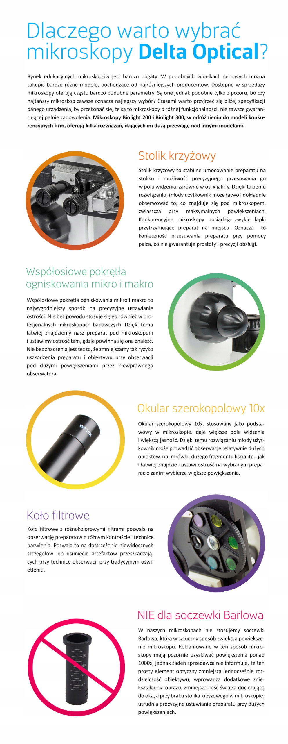 Мікроскоп Delta BIOLIGHT 300 - наступник мікроскопа Biolight 200 - повністю змінений і вдосконалений. Це сучасний і функціональний мікроскоп, призначений як для початківців, так і для користувачів середнього рівня. Оснащений високоякісною скляною оптикою та багатьма корисними функціями, такими як світлодіодне освітлення з регульованою яскравістю, він також має опцію живлення від батарейок, тому ви можете використовувати мікроскоп у місцях, де немає доступу до електричної мережі.
