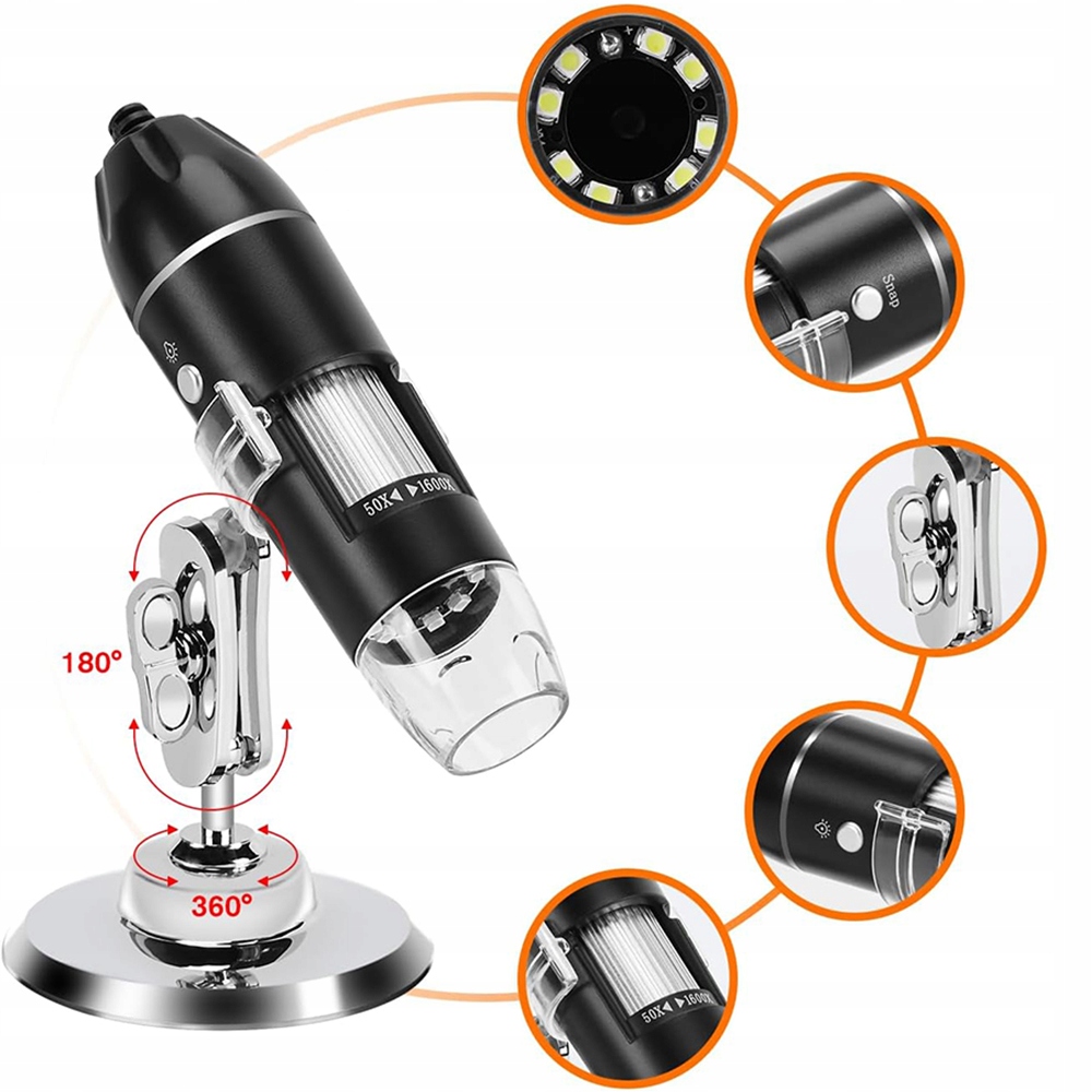 ⭐ЦИФРОВИЙ МІКРОСКОП 50X-1600X З 8 світлодіодами, РЕГУЛЬОВАНА ПІДСТАВКА, СУМІСНИЙ З IOS ТА ANDROID⭐