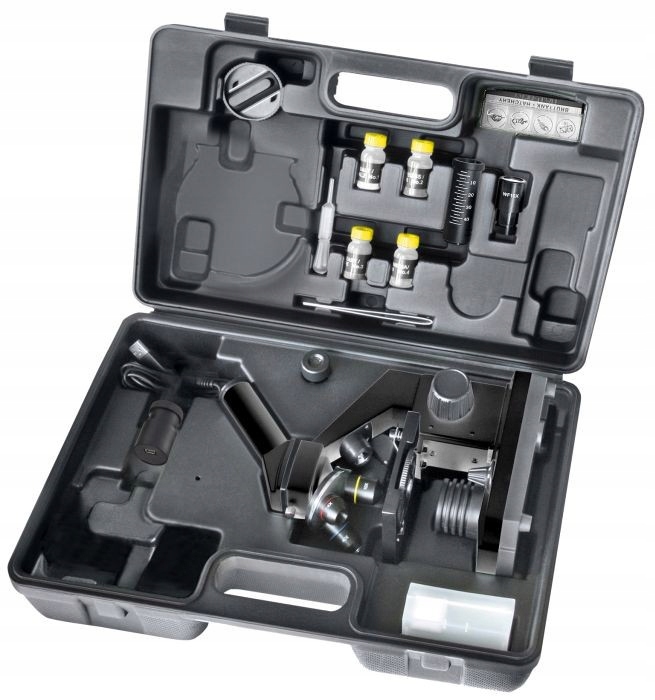 Набір препаратів, предметних і накривних скельця, а також гільйотини та інструментів для препарування, що входить у комплект, дають змогу негайно використовувати мікроскоп і готувати власні препарати.