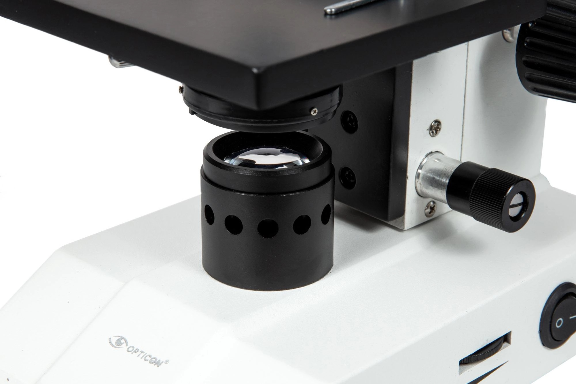Оптика найвищого класу, заснована на ретельно виготовлених лінзах з благородного скла, гарантує яскраве, чітке і контрастне зображення мікросвіту. Прилад сумісний зі стандартними окулярами та мікроскопічними об’єктивами, що дозволяє легко розширювати його. Корпус і основні механічні компоненти пристрою виготовлені з 100% металу. Opticon SkillMaster PRO — інструмент, який прослужить роками, розроблений для тисяч годин роботи, навчання та розваг.