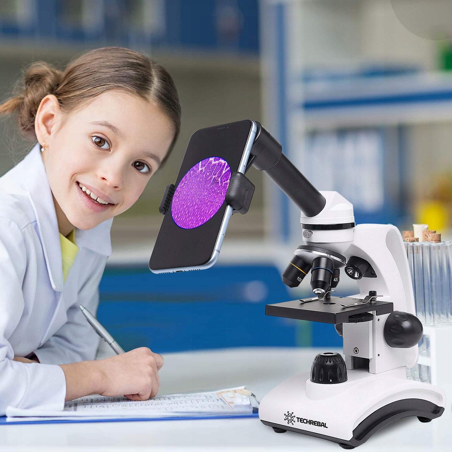 ⭐️ Завдяки тримачу для телефону, який входить до мікроскопа Techrebal BioVision 2000x, ви можете легко записувати та ділитися своїми спостереженнями. Це ідеальний інструмент для захоплення захоплюючих деталей мікроскопічних структур і обміну ними з іншими. Тримач забезпечує стабільність, яка гарантує чіткі фотографії та відео, ідеально підходить для документування результатів тестування.