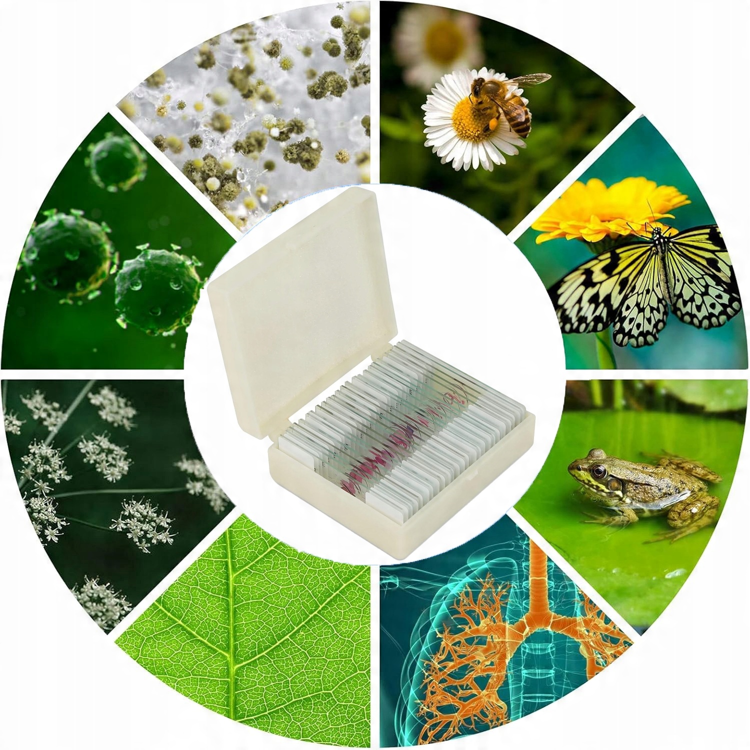 Набір з 30 -якості біологічних препаратів високої якості в галузі анатомії, призначеного для спостереження під мікроскопом. Набір ідеально підходить для домашніх спостережень, а також у професійній лабораторії.