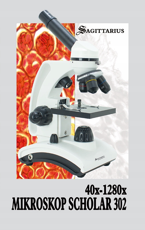 Microscope-Sagittarius-SCHOLAR 302, 40x-1280x, гвинт мікро-макро, акумулятор і живлення від мережі