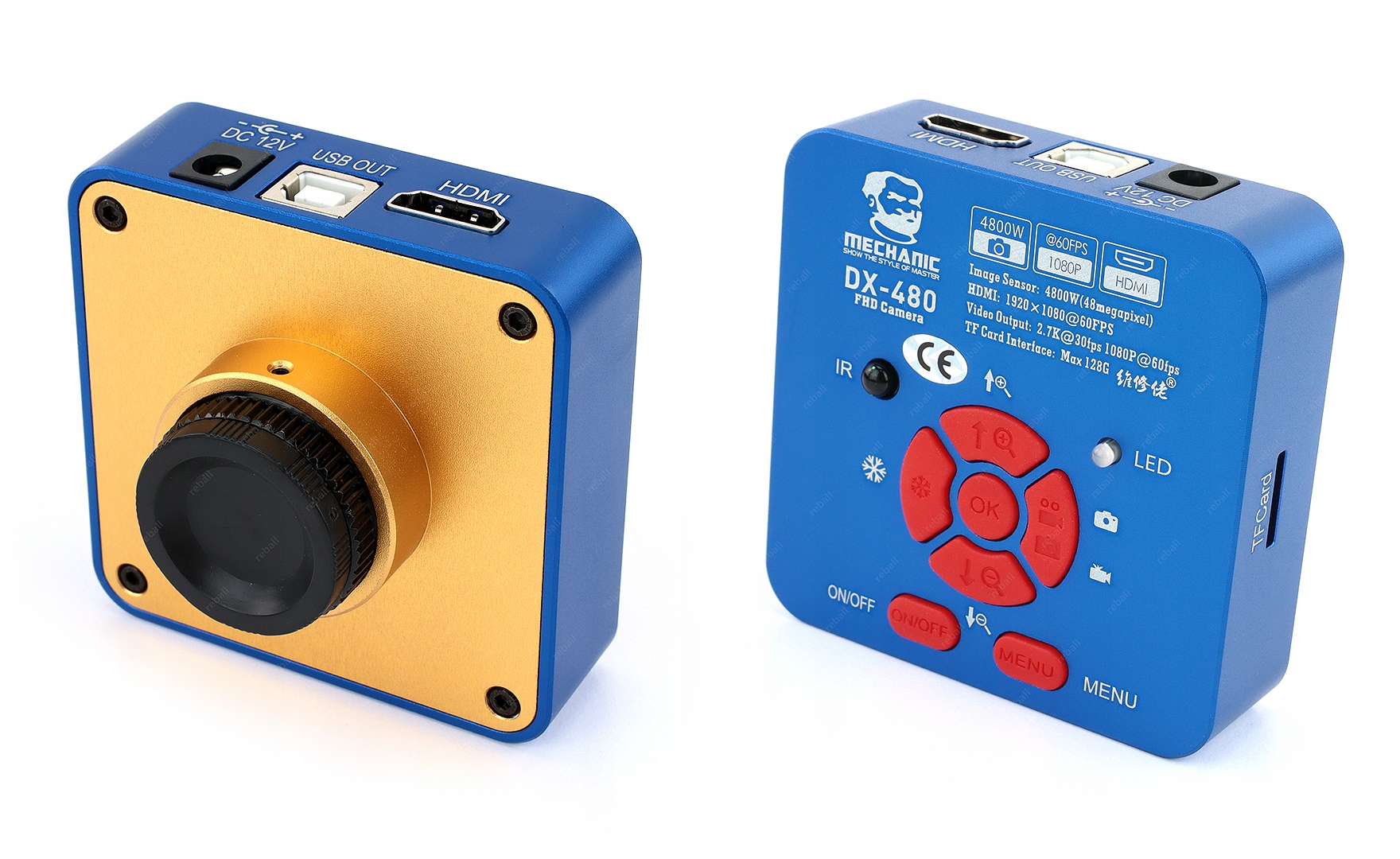 - Механічна камера DX-480 з дистанційним керуванням, блоком живлення, кабелем USB, HDMI і програмним забезпеченням S-EYE,