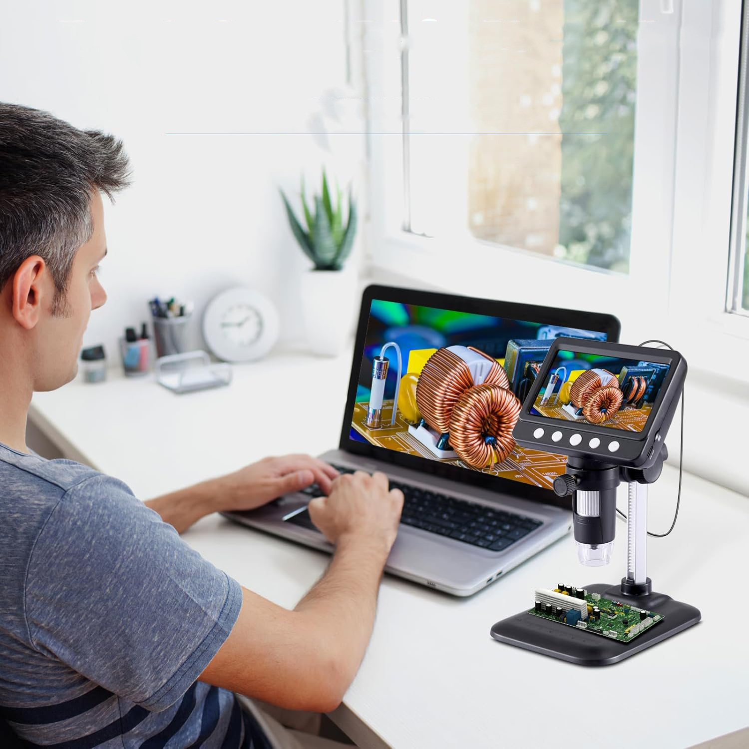 🔬🔬 【РК -цифровий мікроскоп 4.3 "】 Дивовижні фотографії та відео на екрані 4.3". Збільшення мікроскопа становить 1000, що є стандартним для мікроскопів найкращої якості. Голова обертається плавно, що полегшує використання мікроскопа. Точне фокусування дозволяє швидко та чітко концентрацію зразка.