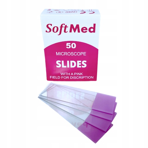 Мікроскопічні предметні скла - шліфовані краї, з рожевим полем для опису