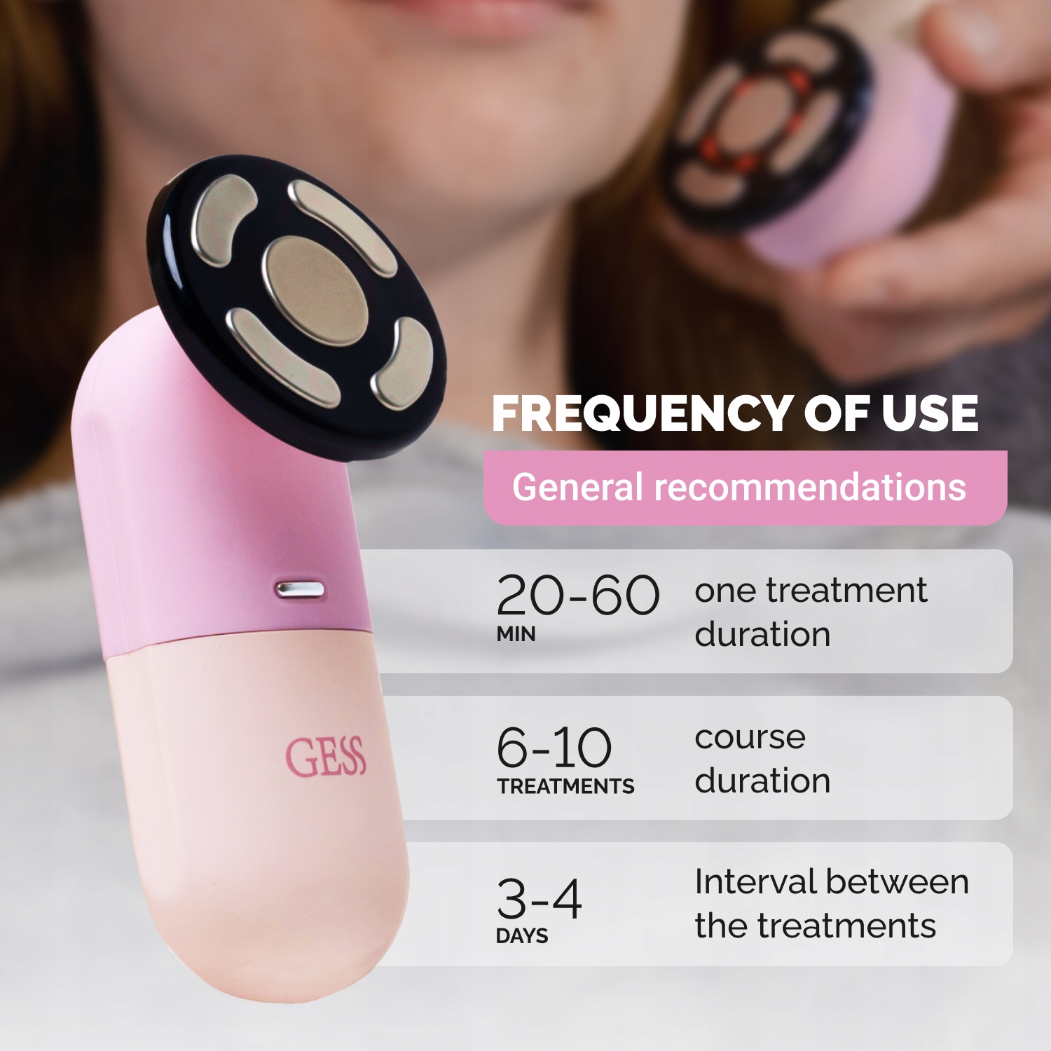 GESS Reisen - мікрострумовий масажер для обличчя та шиї. Завдяки дії слабких електричних імпульсів вирівнює тон шкіри, підтягує контури обличчя, зменшує дрібні зморшки та усуває набряки.