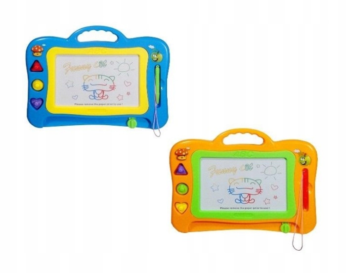 Дошка для письма та малювання. Блокнот містить ручку. Картини можна легко видалити, пересуваючи повзунок гумки. У набір також входять 3 штампи. Продукт упакований в прозорий пакет. Іграшка для дітей від 3 років. Товар доступний у кількох кольорах, обраних випадковим чином. Ціна вказана за одну штуку.