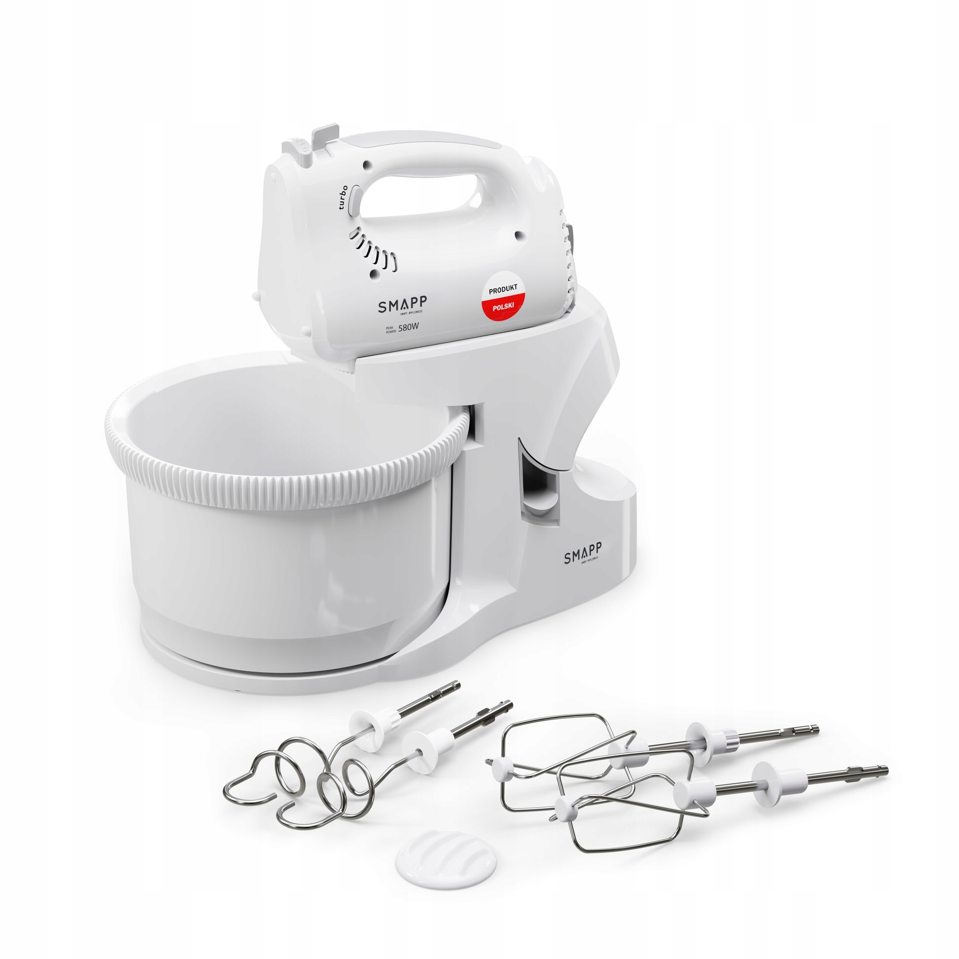 Міксер із чашею від SMAPP дивує ще більшою потужністю двигуна виробництва Zelmotor sp. z o.o.! Потужність 580 Вт* — найкращий вибір, якщо ви хочете отримати ідеально замішане важке тісто для вареників і хліба.