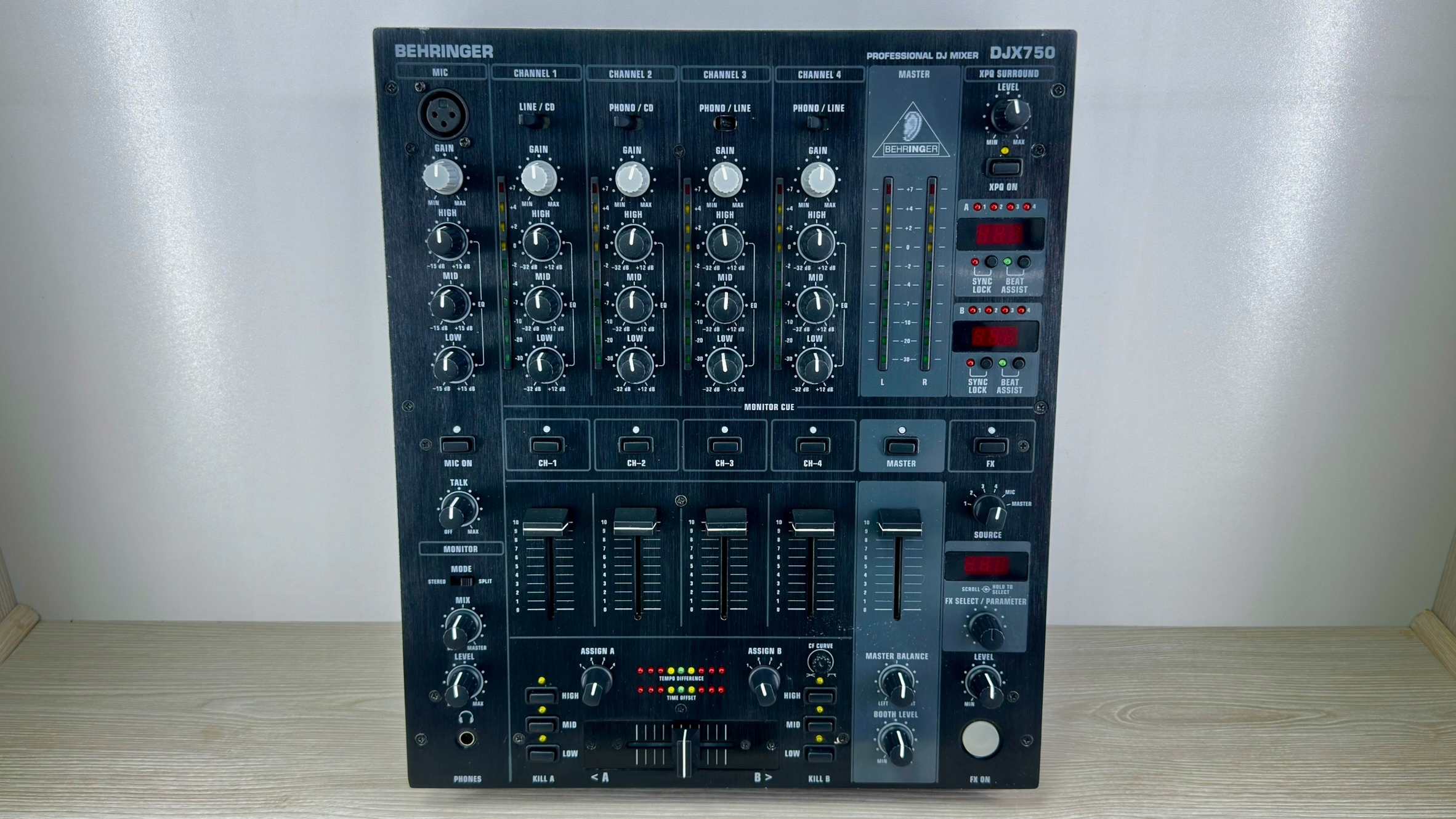 Професійний ді-джей-мікшер Behringer DJX750 пропонує 5 вхідних каналів (4 стерео + мікрофонні канали) з незалежними регуляторами підсилення та 3-смуговим еквалайзером на кожному каналі, цифровим процесором ефектів і автопереговором функція, що робить його універсальним інструментом для мікшування музики в клубах, мобільних сетах і домашніх ді-джеїв. Пристрій, серед іншого, має лічильник BPM із синхронізацією, регульований ефект об'ємного стереозвуку XPQ 3D і дуже плавні повзунки Ultraglide з тривалим терміном служби.