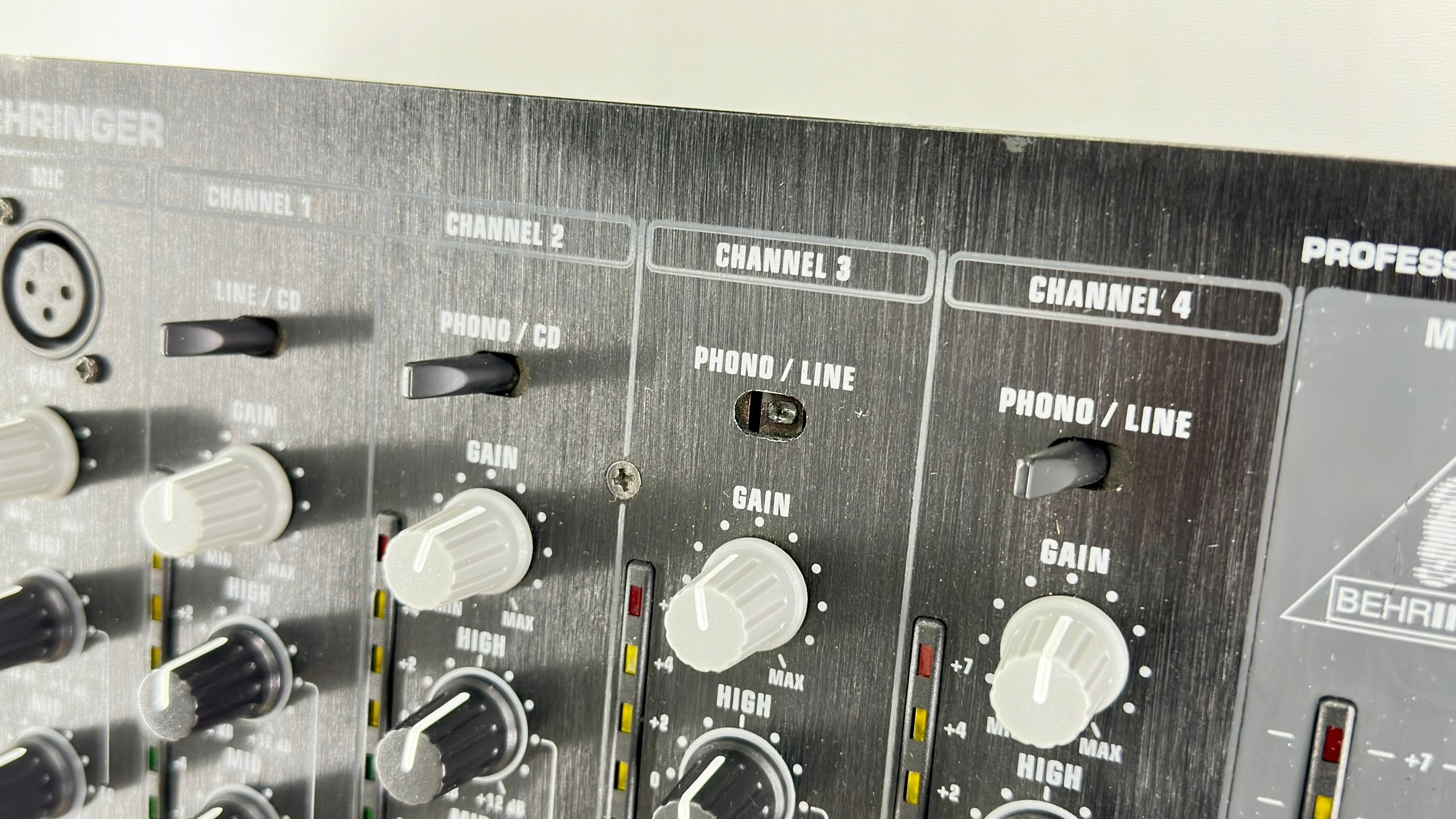 У представленому пристрої зламаний перемикач PHONO/LINE на каналі 3 (видно на фото), що може вплинути на зручність перемикання входу в цьому каналі - крім цього, мікшер працює та інші функції. ефективний.