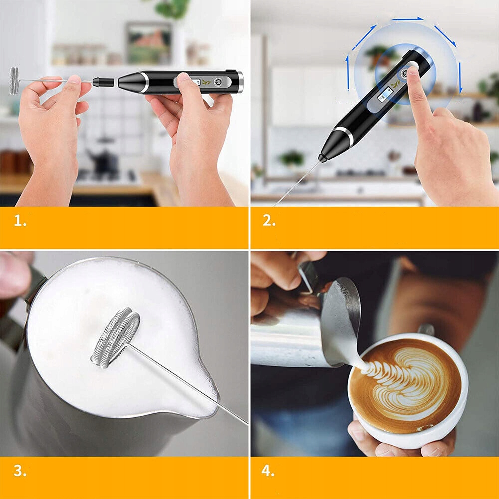 ✔️✔️ 【Тихий і простий у чищенні】:Бездротовий спінювач молока легко чистити. Просто промийте його водою, щоб зрушити змішувальний гвинт (Примітка: корпус спінювача молока не є водонепроникним, не занурюйте його у воду).