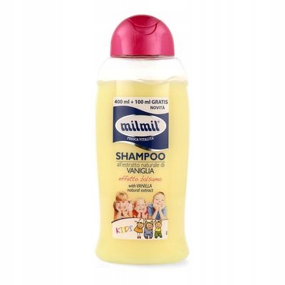 ШАМПУНЬ ТА ГЕЛЬ ДЛЯ ВАННЯ MIL MIL ДІТЯЧИЙ - ідеальний продукт, створений для ніжного дитячого волосся. Цей шампунь об'ємом 500 мл поєднує властивості догляду та задоволення від купання завдяки натуральному екстракту ванілі.
