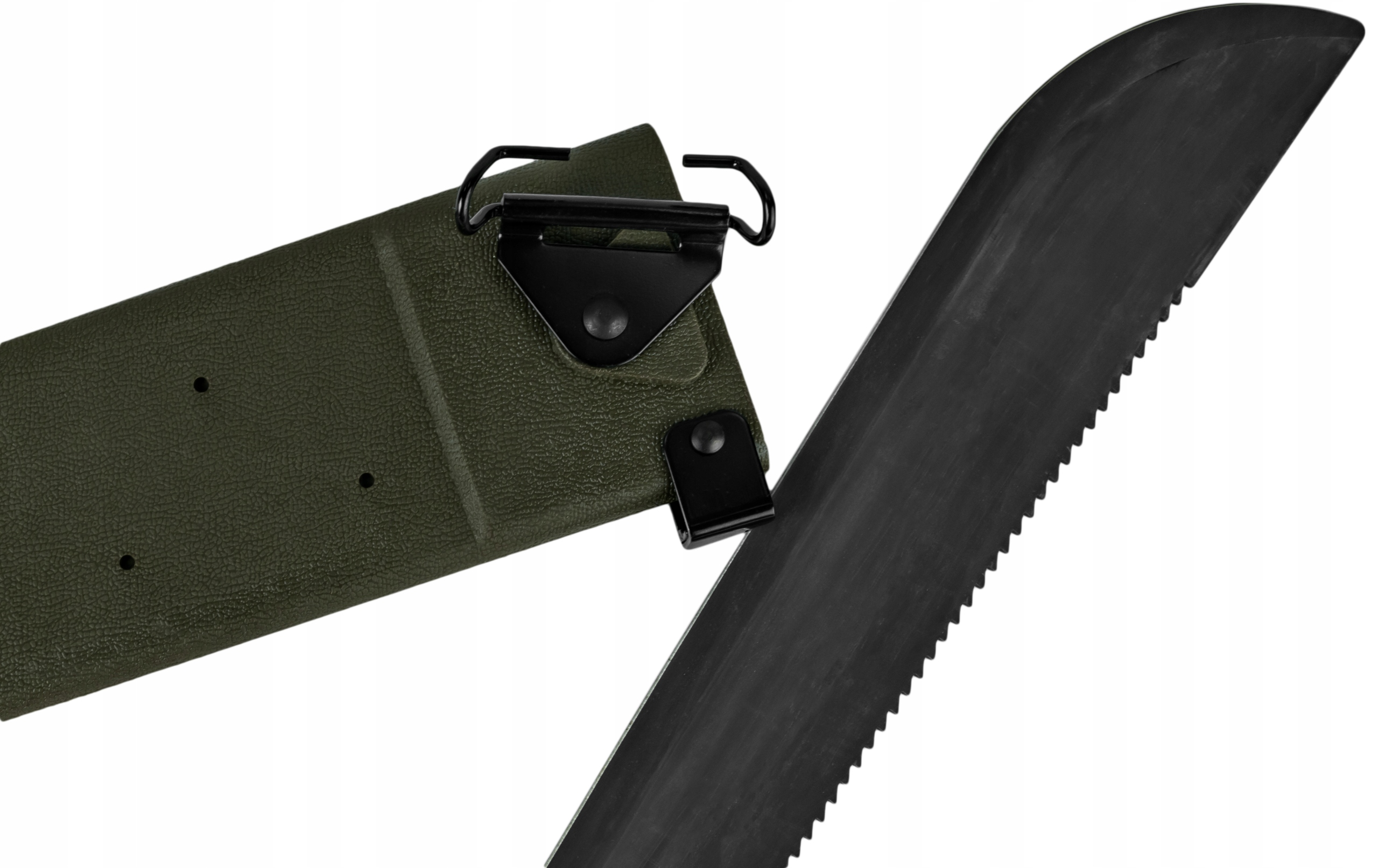 Піхви мачете виготовлені з гнучкого матеріалу, який поєднує в собі міцність і малу вагу. Він оснащений спеціальним тримачем у системі LC2, що дозволяє кріпити його на поясі.