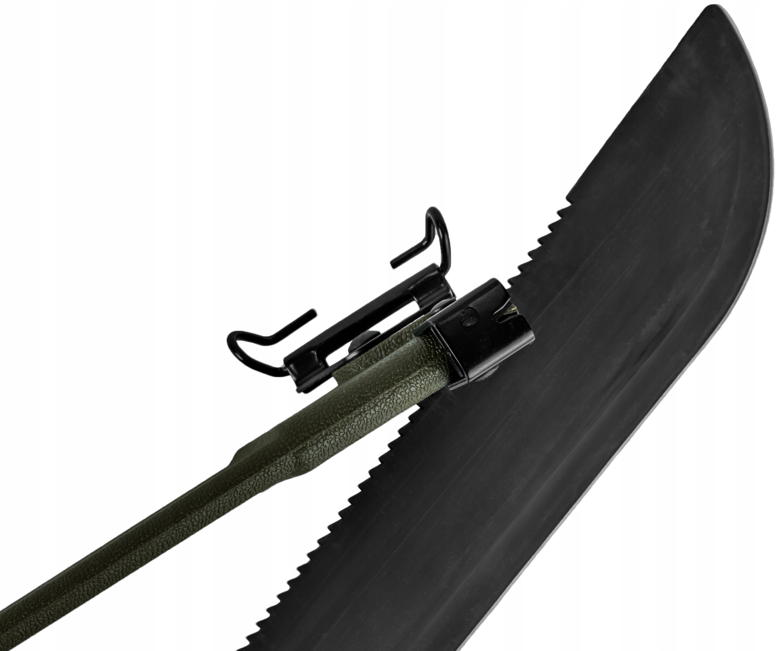 Загартована сталь, з якої виготовлено лезо, додатково піддана процесу окислення (чорніння), що захищає від корозії, зменшує відбиття світла й таким чином покращує маскування.