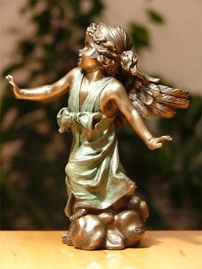 Скульптура покрита бронзою та склеєна делікатним матеріалом, який не дряпає меблі.