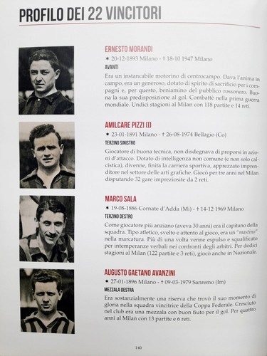 Біографії також були представлені з фотографіями всіх 22 гравців. Команди чемпіонату з Мілана та їх статистика. Книга написана італійською мовою.