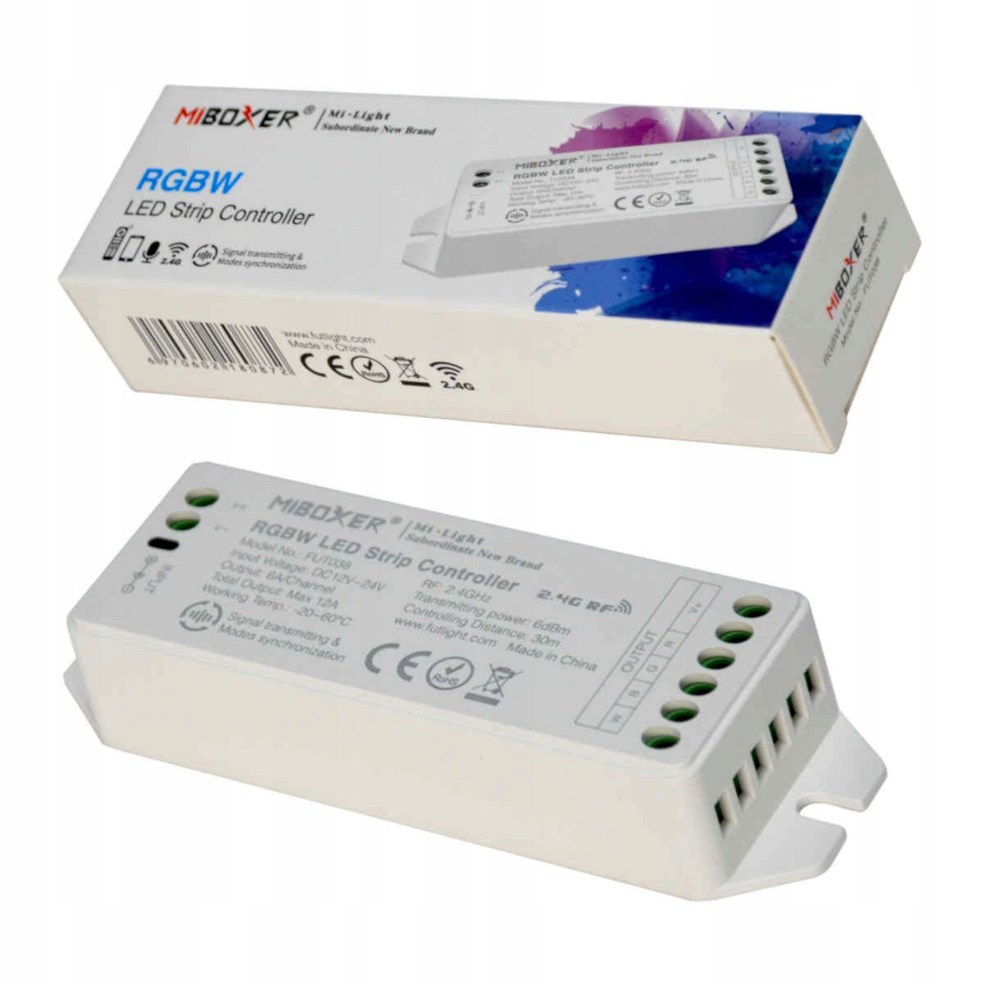 Контролер функціонує як контролер для світлодіодних стрічок RGBW. Зв'язок через радіохвилі 2.4G гарантує високу точність і стійкість до перешкод. Приймачем можна керувати за допомогою зонного пульта дистанційного керування або комутатора WiFi (керується за допомогою пристроїв під управлінням Android або iOS).