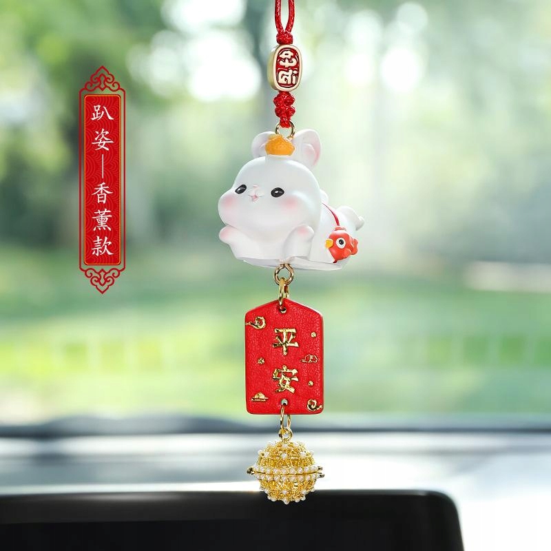 Милий автомобільний кулон із кроликом, декоративна естетична фігурка зайчика зі смоли, що лежить