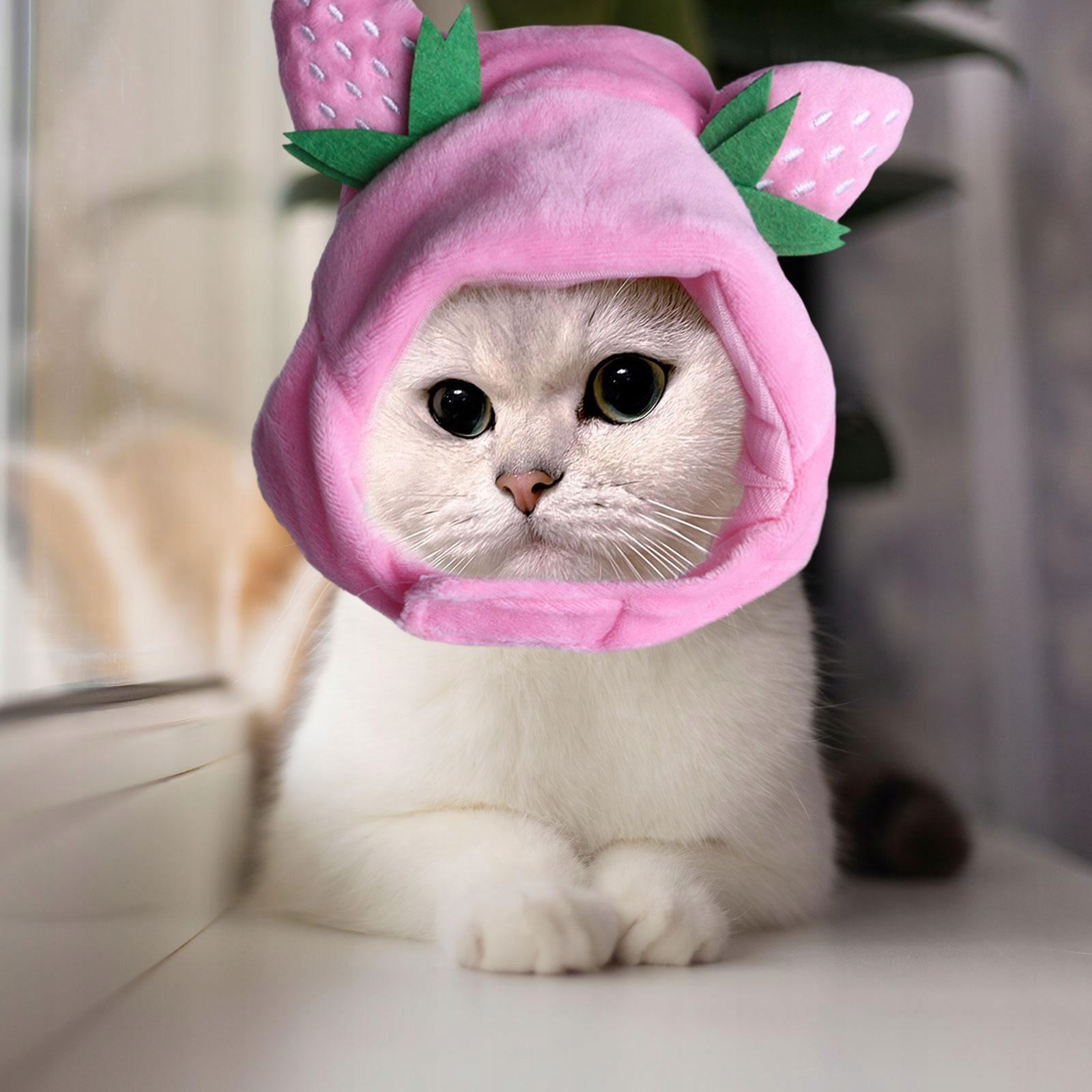 Милий костюм полуничного кота Капелюх, плюш для котів і маленьких собак, зручний