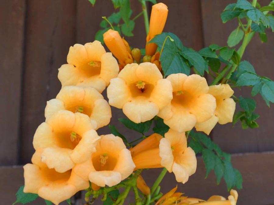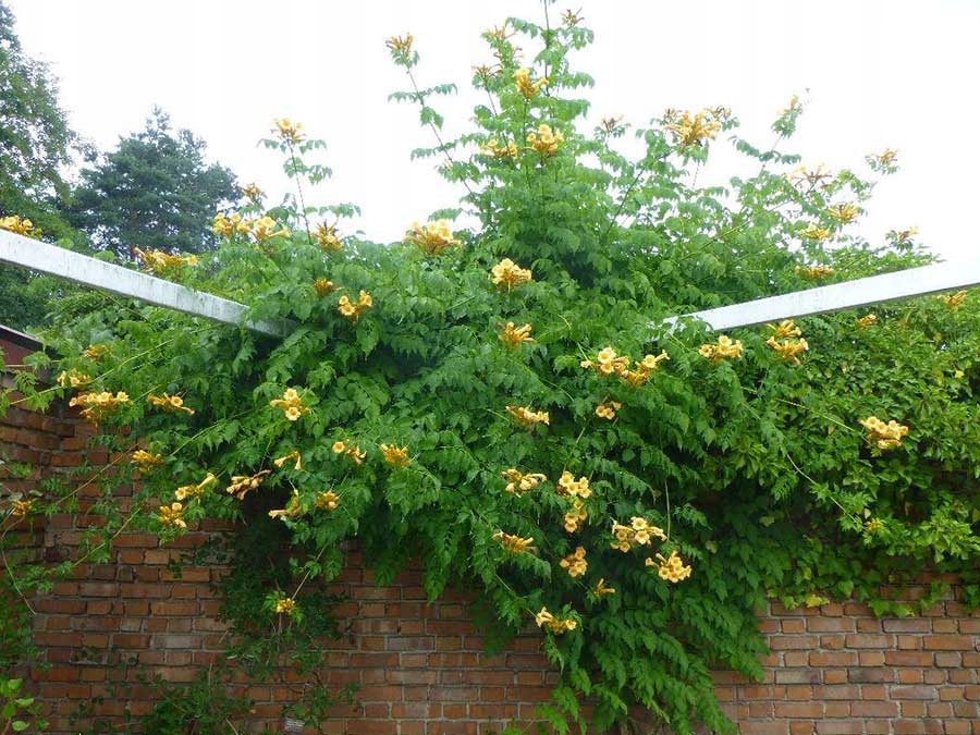 декоративний, сильно зростаючий альпініст з привабливими квітами, вибраним сортом в Угорщині. Ступажі ростуть довжиною приблизно до 5-10 м, піднімаючись на опори за допомогою коренів чіпляння. Щорічно близько 1-4 м. квіти у формі труби , гармати близько 6-8 см, жовтий , з’являються у липні і зберігаються на кущі до вересня . Квітання відбувається через 2-3 роки після посадки. Альпініст рекомендується для посадки з різними опорами, наприклад Альтанки, перголи, дерева, огорожі тощо. Це буде чудово працювати для маскування не дуже естетичних стін будівлі, стіни тощо