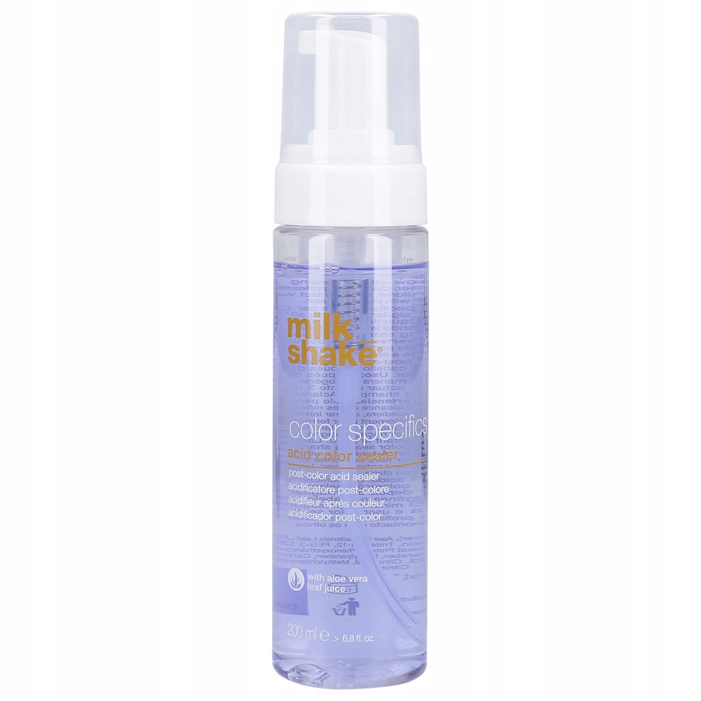Milk Shake Acid Color Sealerпіна, призначена для закриття кутикул волосся після технічних процедур. Увічнює ефект фарбування. Він був збагачений технологією Biogenius, яка дозволяє отримати стійкий, глибокий і блискучий колір. Містить протеїни молока та пшениці, які живлять волосся.