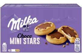 Міні-зірочки Milka Choco — це невелике печиво форми та унікальної естетики, яке не тільки чудово смакує, але й виглядає чудово — ідеальне для дітей і дорослих. Всередині кожної зірочки є оксамитовий молочний крем, який ідеально поєднується з тонким хрустким пісочним тістом.