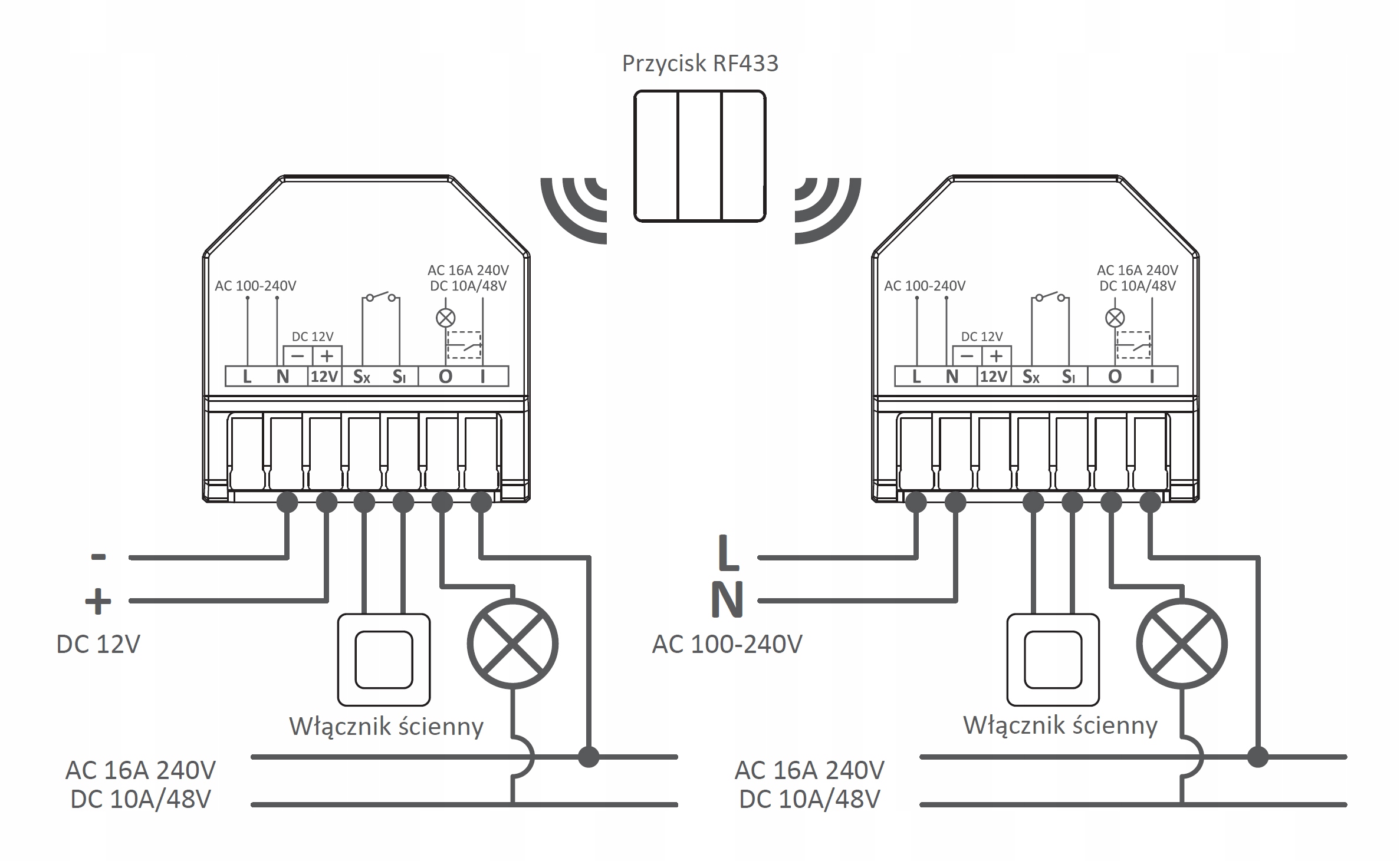 з радіомодулем RF433 - сумісний з бездротовими кнопками*