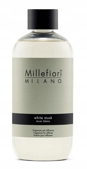 доповнення до millefiori milano аромат з білим мускусним ароматом. Пляшка з маслом, розробленою спеціально для дифузорів з паличками. Порошкові нотки білих квітів у поєднанні з ароматом свіжих ванільних зерен ідеально підходять для вітальні, спальні чи офісу, додавання інтер'єру витонченості та свіжості.