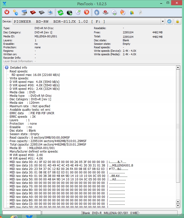 Носії перевірені та перевірені на професійному накопичувачі Pioneer BDR-PR1