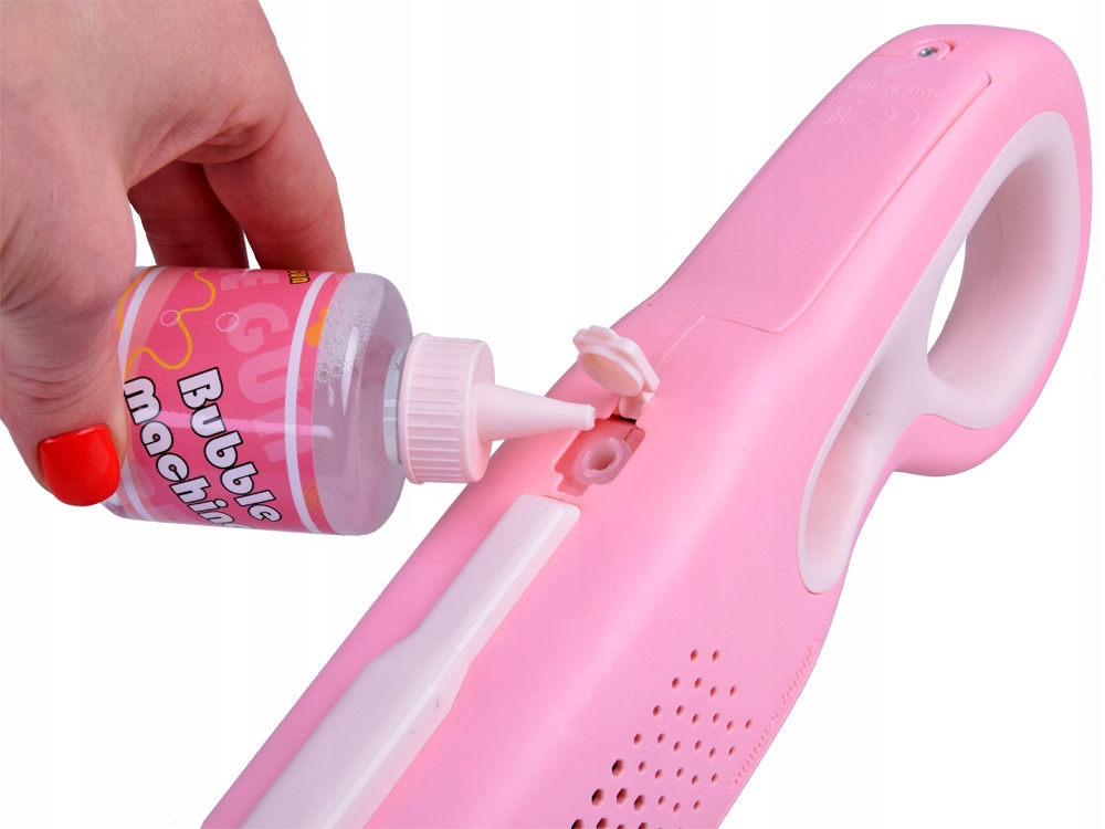 пістолет із вбудованою машиною -міхурами -це дуже приваблива іграшка, що дозволяє нам створювати багато барвистих і красивих бульбашок за допомогою натискання однієї кнопки. Ідеально підходить для дня народження, граючи в саду.