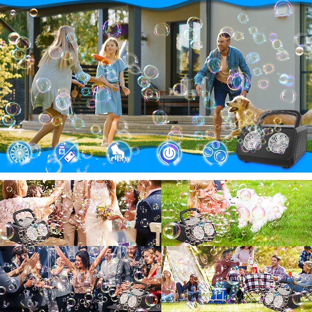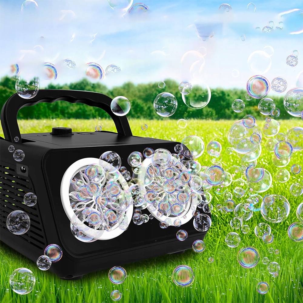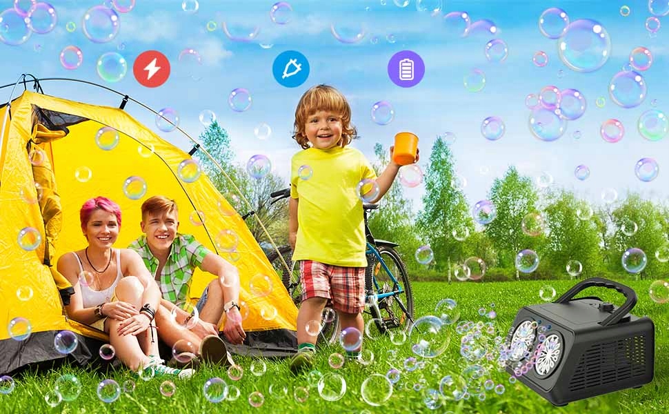 ✔automatic Machine для виробництва бульбашок з високою продуктивністю: Машина бульбашки може виробляти понад 20 000 бульбашок на хвилину завдяки 26 двопортових обертальних форсунках, 2-градусному регулюванні та супер інтегрованому двигуні. Навіть за відсутності вітру ви можете підірвати багато бульбашок, швидше, вище і далі. Цього літа ви можете насолоджуватися барвистим світом мильних бульбашок завдяки машині бульбашок!
