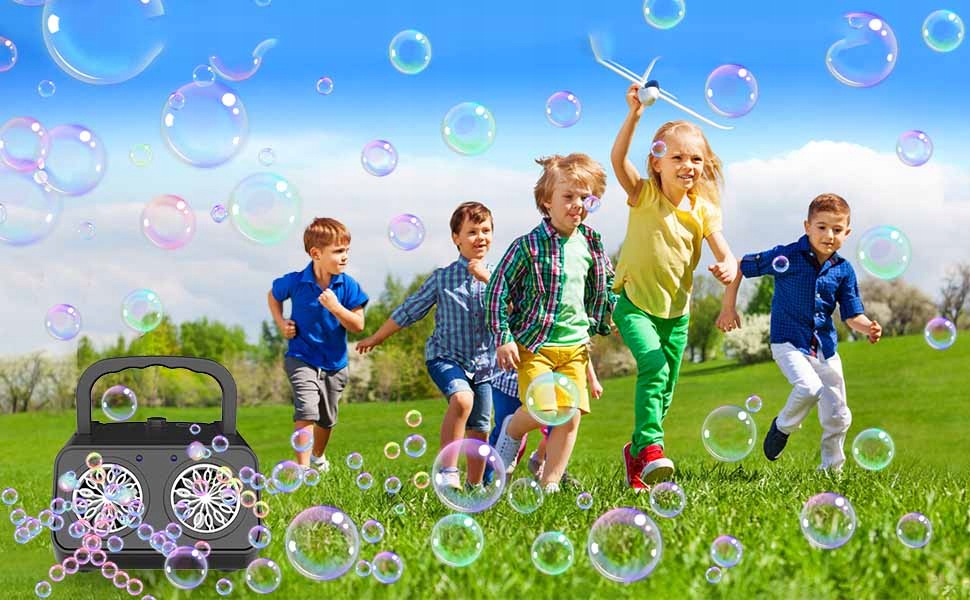 ✔ 【Ідеальний подарунок для дітей/тварин】: машина для виготовлення мильних бульбашок - ідеальна іграшка на вулиці: на галявині, дворі, пляжі, до парку, для кемпінгу, для гриля, не тільки. Це міцна і довга машина для виготовлення мильних бульбашок, ідеально підходить для всіх, хто шукає безпечну та смішну машину для виготовлення мильних бульбашок. Це також чудовий подарунок для маленьких дітей, дітей та домашніх тварин. Діти можуть грати з мильними бульбашками в будь -який час у парках, у дворі, пляжах, кемпінгу, дитячих майданчиках та газонах.