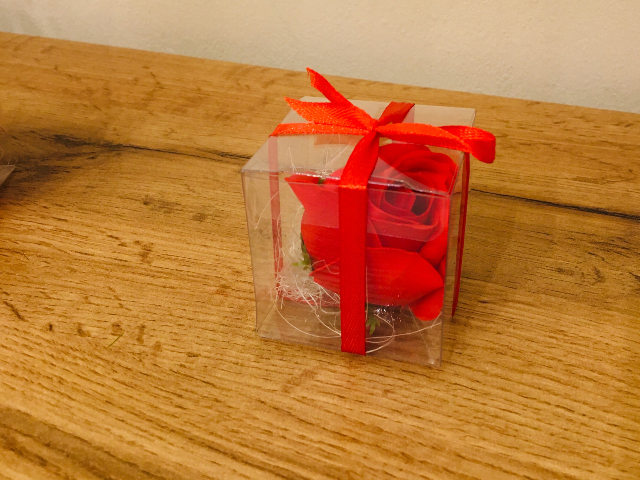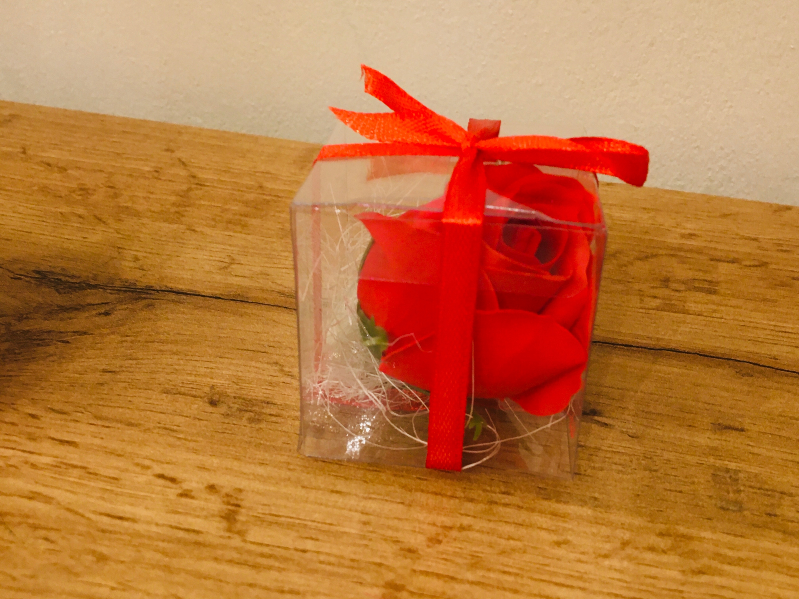 ❤️ У маленькій безбарвній коробці є Мильна квітка - Червона троянда 1 шт. ❤️